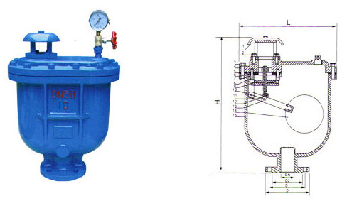 復(fù)合式排氣閥用于污水管道上的最高點或有閉氣的地方,靠排除管內(nèi)的氣體來疏通管道,達到正常工作。如不裝排氣閥,管道隨時出現(xiàn)起阻,是管道出水容量達不到設(shè)計要求,其次:其次:管道在運轉(zhuǎn)時出現(xiàn)停電、停泵管道及時出現(xiàn)負(fù)壓會引起管道振動或破裂,排(吸)氣閥就迅速把空氣吸入管內(nèi),防止管道振動或破裂。